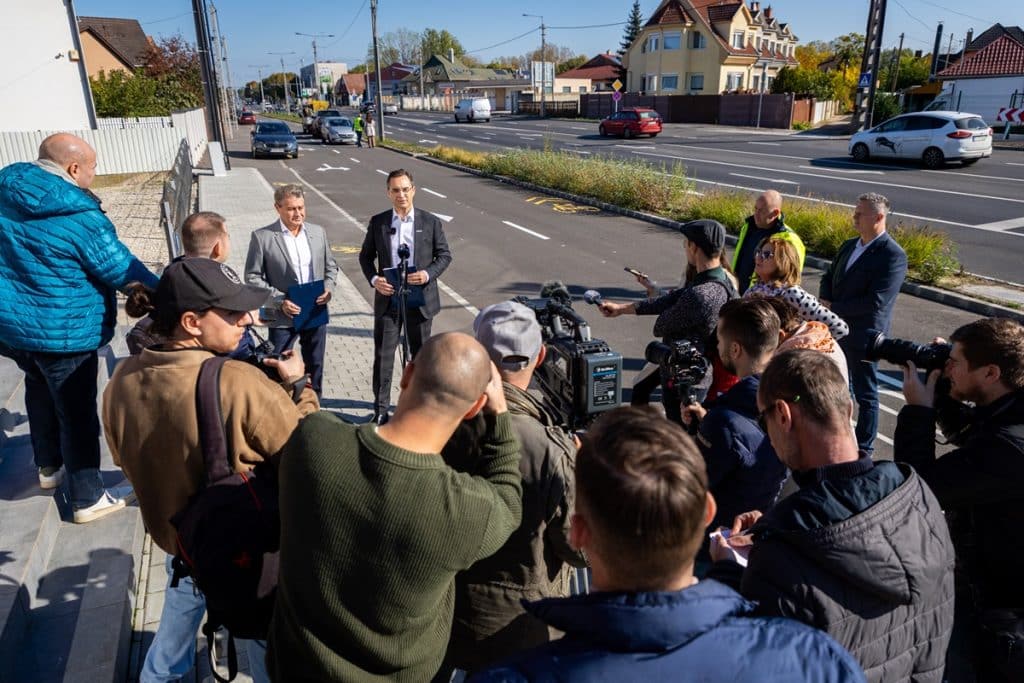 A mai naptól kétszer kétsávon közlekedhetnek az autósok a Sámsoni úton a Kapitány utcától egészen a városhatárig. A fejlesztés részleteit Papp László, Debrecen polgármestere és Tasó László, Északkelet-Magyarország közlekedésének fejlesztéséért felelős miniszteri biztos ismertették a sajtótájékoztatón, 2025. október 15-én.
