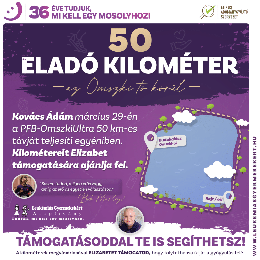 Különleges célért áll rajthoz 2026. március 29-én a budakalászi PFB – OmszkiUltra 50 versenyen Kovács Ádám debreceni maratonista. A sportoló élete első ultramaratoni, 50 kilométeres távját teljesíti majd, miközben adománygyűjtő akcióval szeretné segíteni a leukémiával küzdő, 14 éves Elizabet felépülését.