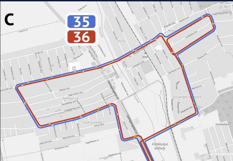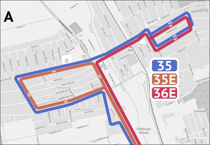A javaslatban három változatot hoztak létre. Az egyikben a 35E csak Felsőjózsát, a 36E csak Alsójózsát érintené, míg a 35-ös járat körbejárná mind a két településrészt, közvetlen kapcsolatot teremtve közöttük. A 34-es járat útvonala nem változna. A B változatban a 35-ös és a 35Y-os járat érintené Alsójózsát a Szordasi úton keresztül, így bevonásra kerülhetne a tömegközlekedésre az új Józsaliget-lakópark is, míg a 36-os járat a jelenlegi útvonalán maradna. A harmadik változatban a 35-ös és 36-os járat egész nap közlekednének Alsó- és Felsőjózsán is, illetve érintenék a Józsaliget-lakóparkot.