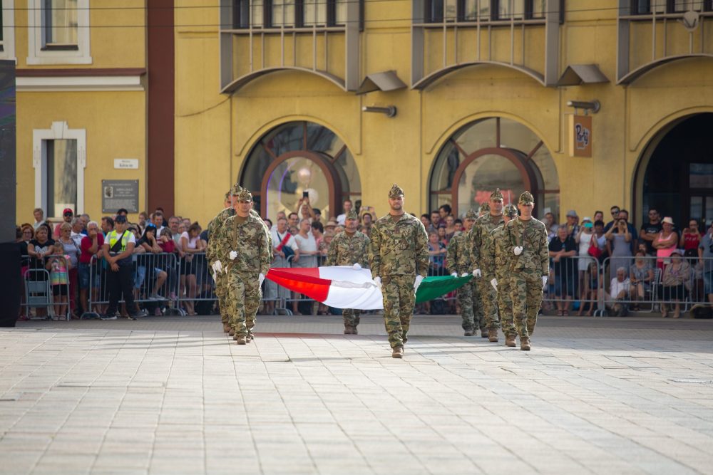 Zászlófelvonással kezdődött az ünnepség a Kossuth téren.