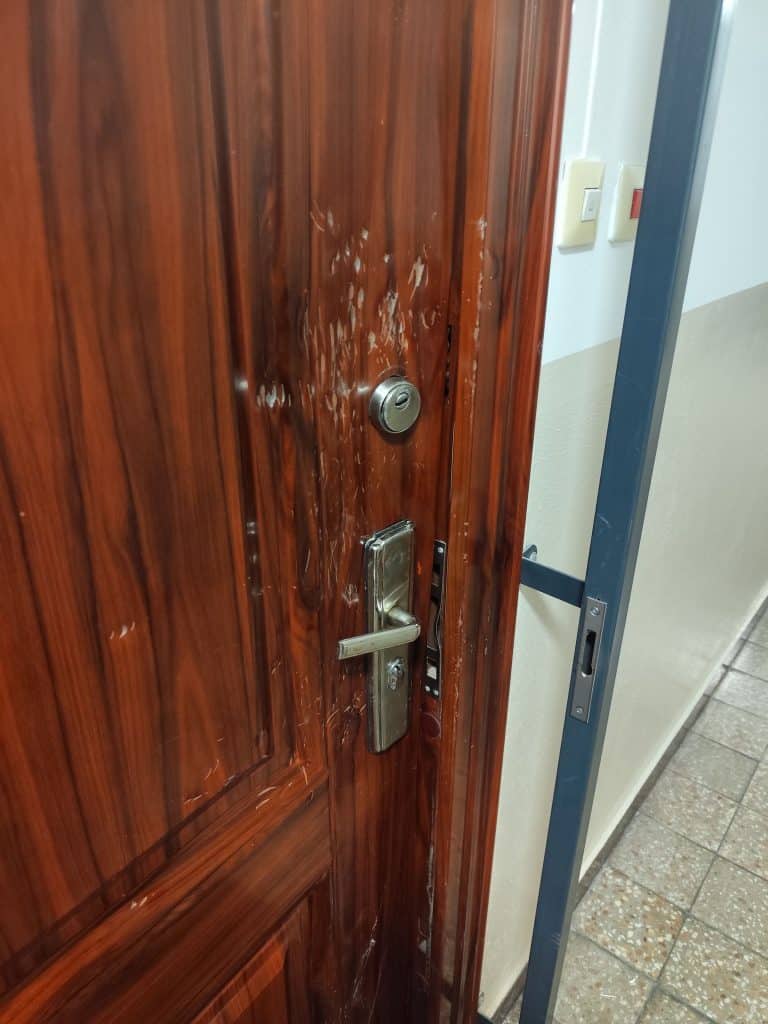 A helyszínre kiérkező egyenruhások három nőt vontak intézkedés alá. Kiderült, hogy a rongálást elkövető személy a barátnője volt párját szerette volna számonkérni. Miután a férfi nem nyitott ajtót és nem reagált a kopogásra, a 38 éves nő dühében klopfolót szerzett, és azzal próbálta betörni az ajtót.