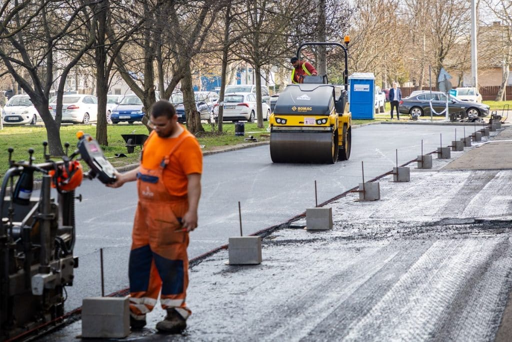 A helyszínen elhangzott, hogy jelenleg az U alakú szervizút mentén mintegy 150 parkolóhely nagyfelületű aszfaltozása és felfestése zajlik, amely várhatóan 15–20 százalékkal növeli a parkolási kapacitást. A munkálatokat szakaszosan végzik annak érdekében, hogy a forgalom zavartalan maradjon. Az időjárási körülményektől függően a felújítás körülbelül négy hétig tart.