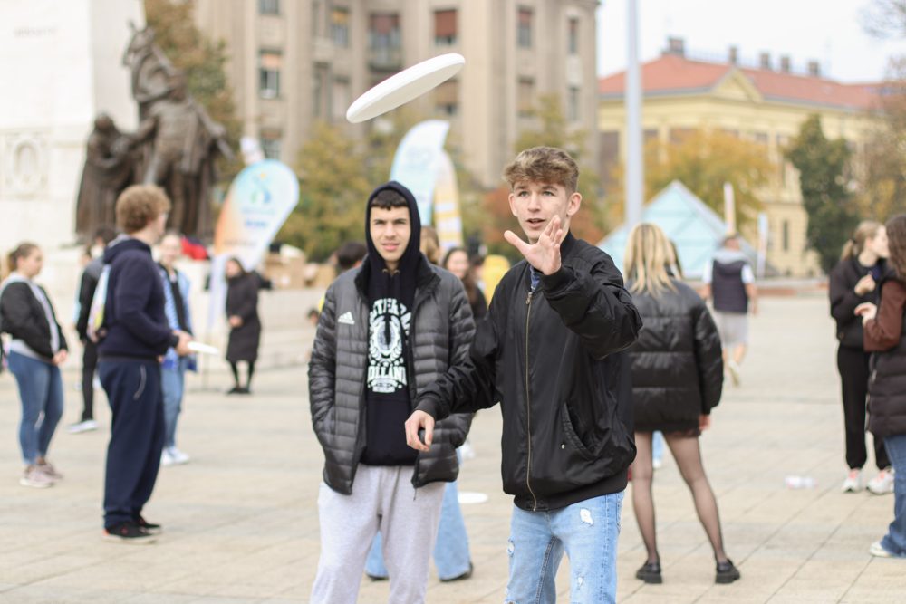A flashmobon részt vett több helyi általános- és középiskola több mint ötszáz tanulója, de a járókelők, kicsik és nagyok, fiatalok és öregek is korongot ragadtak, hogy kipróbálják, milyen sporteszközökkel játszanak majd a Világbajnokság résztvevői 2023. július 4-8. között.