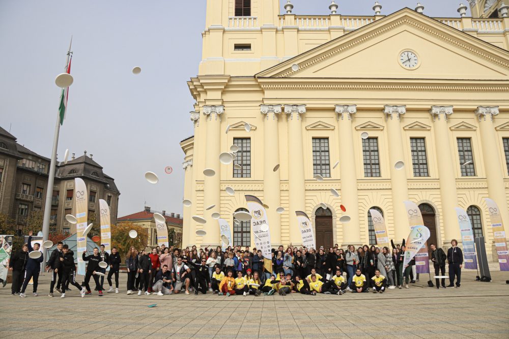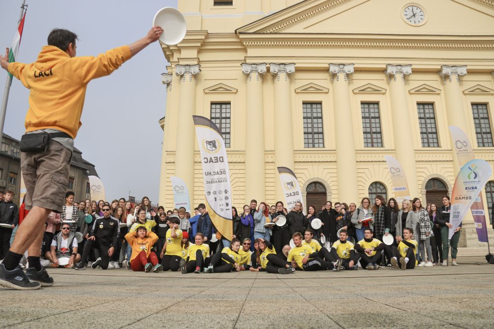 A DEAC sportolói által szervezett flashmob megmozdulás célja az volt, hogy felhívja a figyelmet arra, hogy jövőre a Debreceni Egyetem ad otthont az Ultimate Frizbi Egyetemi Világbajnokságnak.