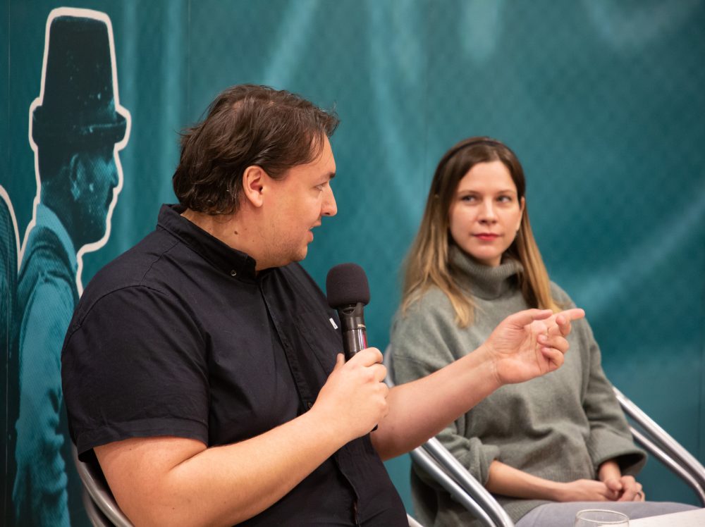 színésznő, Vincze Máté Artur forgatókönyvíró. Moderátor: Szénási Miklós író, újságíró.