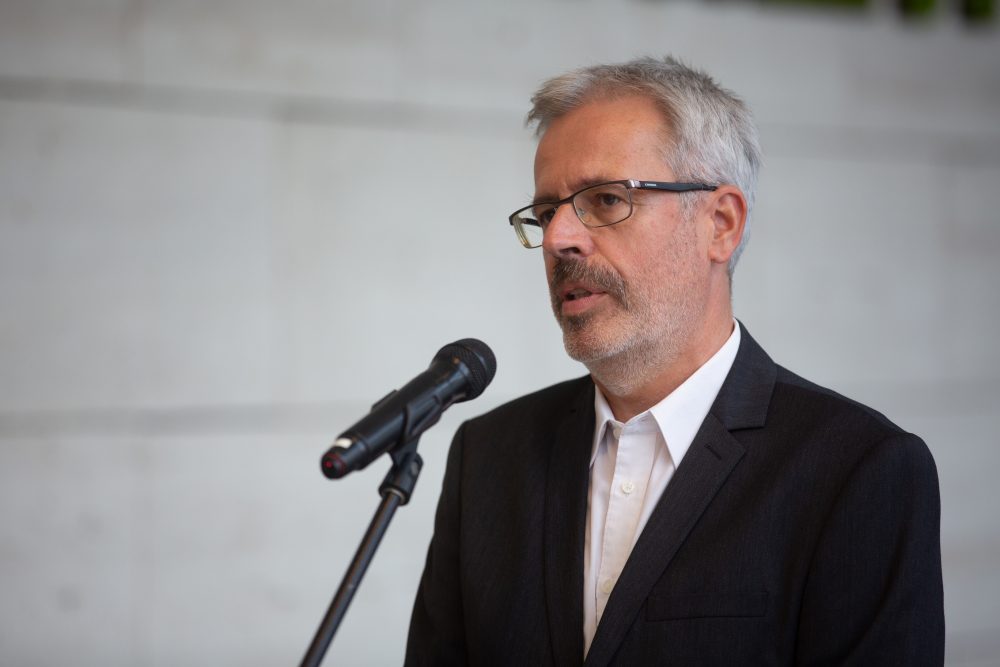 A jelenlévőket China Tibor, a Hajdú-Bihar Megyei Építész Kamara elnöke és Süli-Zakar Szabolcs, a MODEM művészeti vezetője köszöntötte.