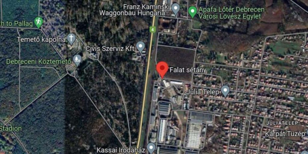 A “Falat sétány” néven ismert útról van szó, amely egy magánút, ezt jelzi tábla is. Ez a 4-es főúttal merőlegesen elhelyezkedő út a régi GÖCS telep szélén. Ezt az útszakaszt az utóbbi időben a terület egyik tulajdonosa elzárta a közlekedők elől.
