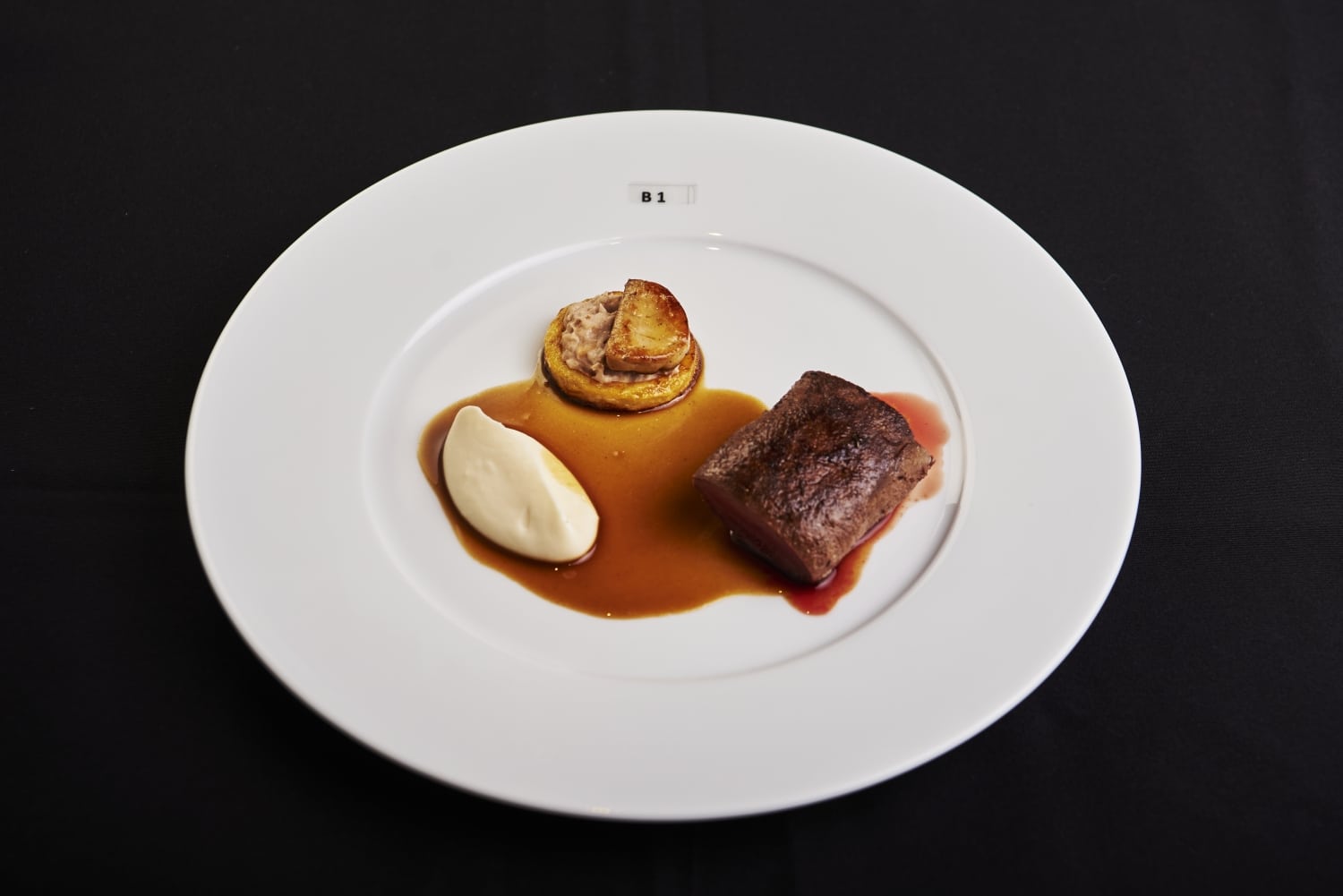 - Főétel: Grillezett szarvasgerinc, konfitált burgonyával, diós zeller raguval, sült kacsamájjal és jus-vel szervírozva