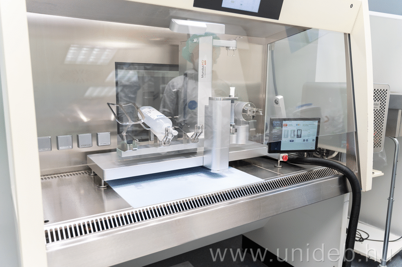 A robot működéséhez továbbra is szükséges az emberi közreműködés – például a terápiás adatok beolvasása vagy az alapanyagok betöltése –, ám az infúziókészítés folyamata nagyságrendekkel biztonságosabbá és hatékonyabbá válik.