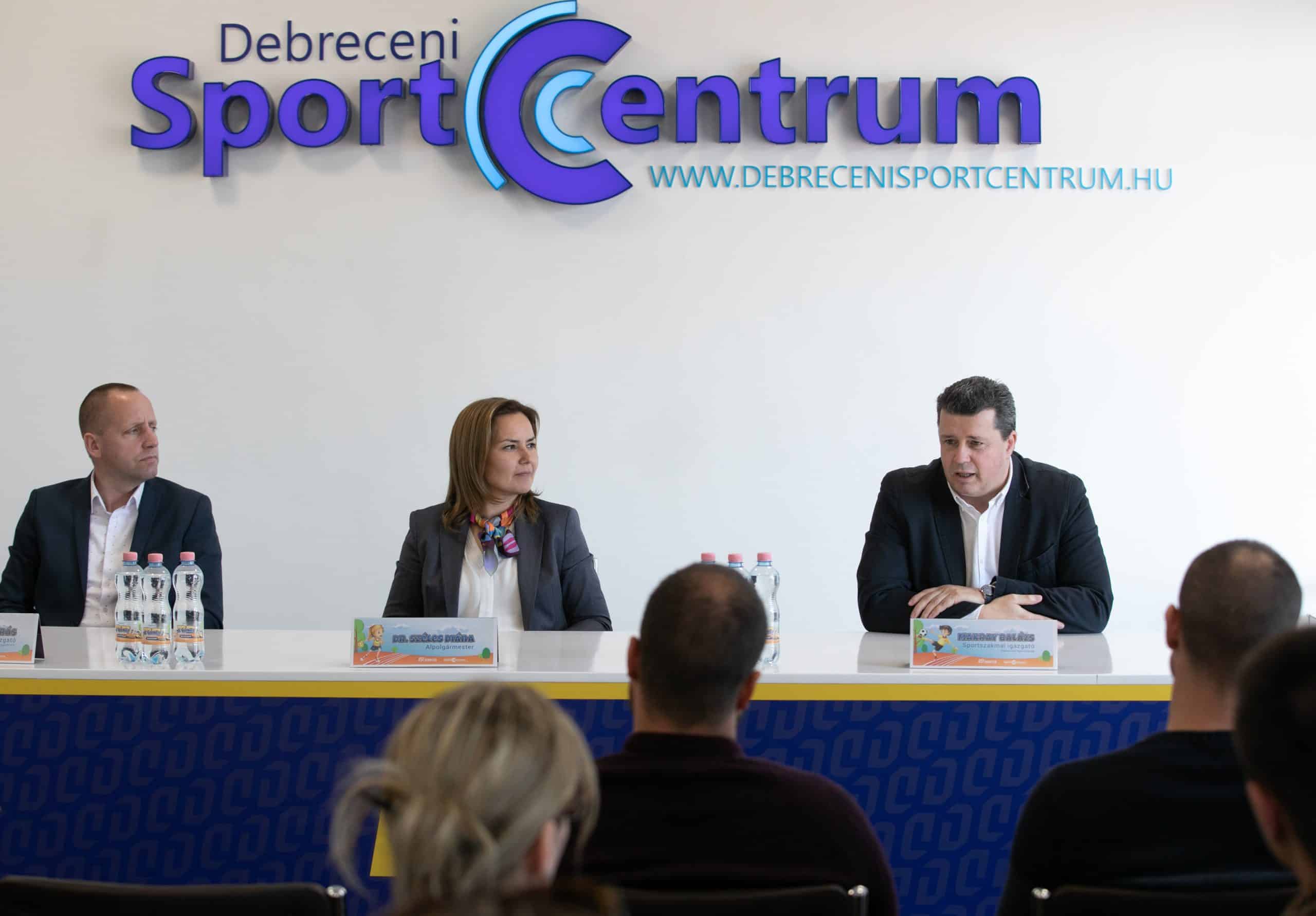 Május 13-án rendezik meg az Oláh Gábor utcai sportkomplexumban a Veled kerek a világ elnevezésű sport- és családi napot. A részletekről Széles Diána alpolgármester,Becsky András a Debreceni Sportcentrum Kft. ügyvezetője és Makray Balázs a Debreceni Sportcentrum Kft. stratégiai és sportszakmai igazgatója számolt be.